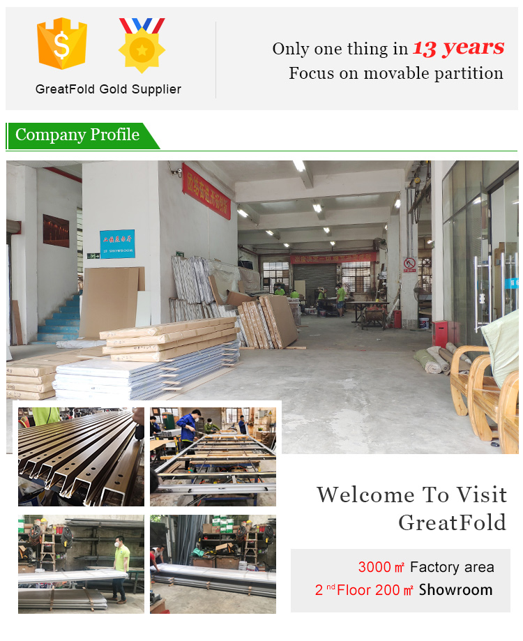 The GreatFold partitions have a variety of active partitions (GLS-65, GLS-85, GLS-100, GLS-100 Ultra High Mobile Wall (up to 17 meters)), movable frame single / double glass partition (GLS -G65 type, GLS-G85 type), restaurant-specific mobile folding screen (GLS-320 type), office high compartment (80 type, 100 type) , etc., more than 20 series and various movable partition aluminum fittings And has a number of independent intellectual property rights. Our partition products are suitable for space division from 2 meters to 16 meters, which can meet the needs of various users. Since its establishment, the company has installed tens of thousands of projects, and its product style, sound insulation and strength have passed the quality inspection certification in Hong Kong and are in a leading position in the same industry.